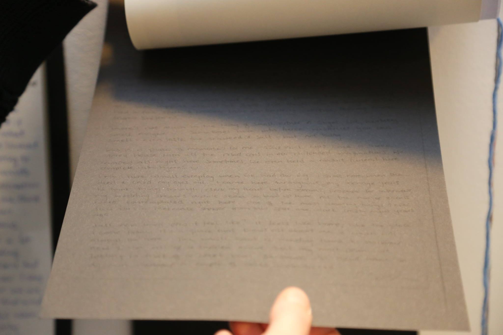 In 2016 I started to work in a collective group which is made up of people from diverse backgrounds, such as artists, philosophers, educators, archaeological studies, anthropology, ethnology. With a few members of that group I created an installation in the Shetland Island called Take me somewhere. The work consists of a cross-media installation that is produced in collaboration with the four other artists as well as invited guests. The installation is composed of diverse artefacts; letters, physiographical records, works on paper, archival documents, knit, maps and oral history, video, photos and these represent the collective approach we use to better understand the world around us. This work is based on an invitation to participate in a dialogue about site specific experiences, and how these might be translated and transmitted outside a particular place. This method appealed to me, especially the part of getting to know people through letters and then later meeting them to work on the installation. I met i.e. with the local knitting club in Lerwick.